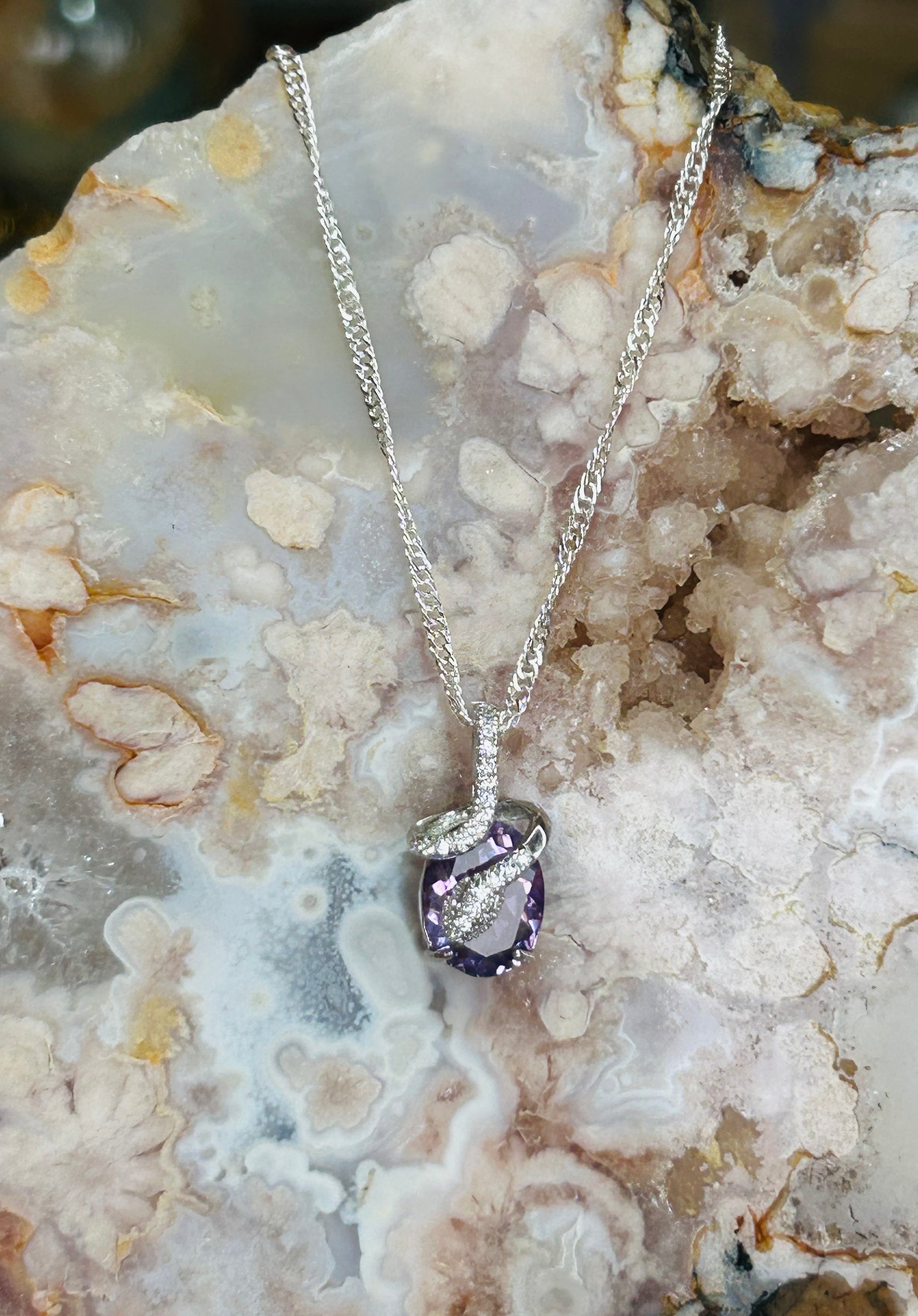 Amethyst snake pendant on s925 20” chain
