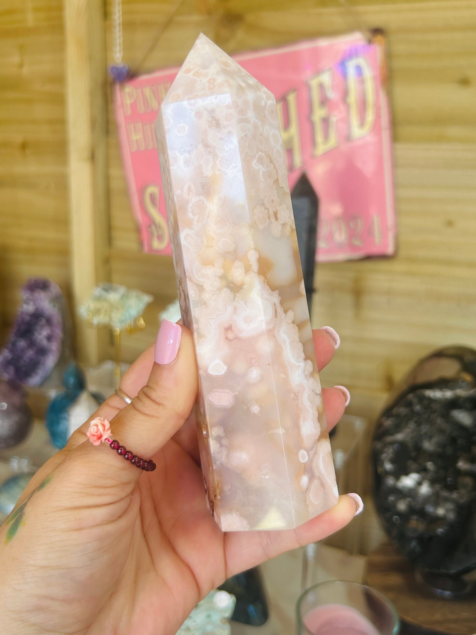 Carnelian flower agate tower
