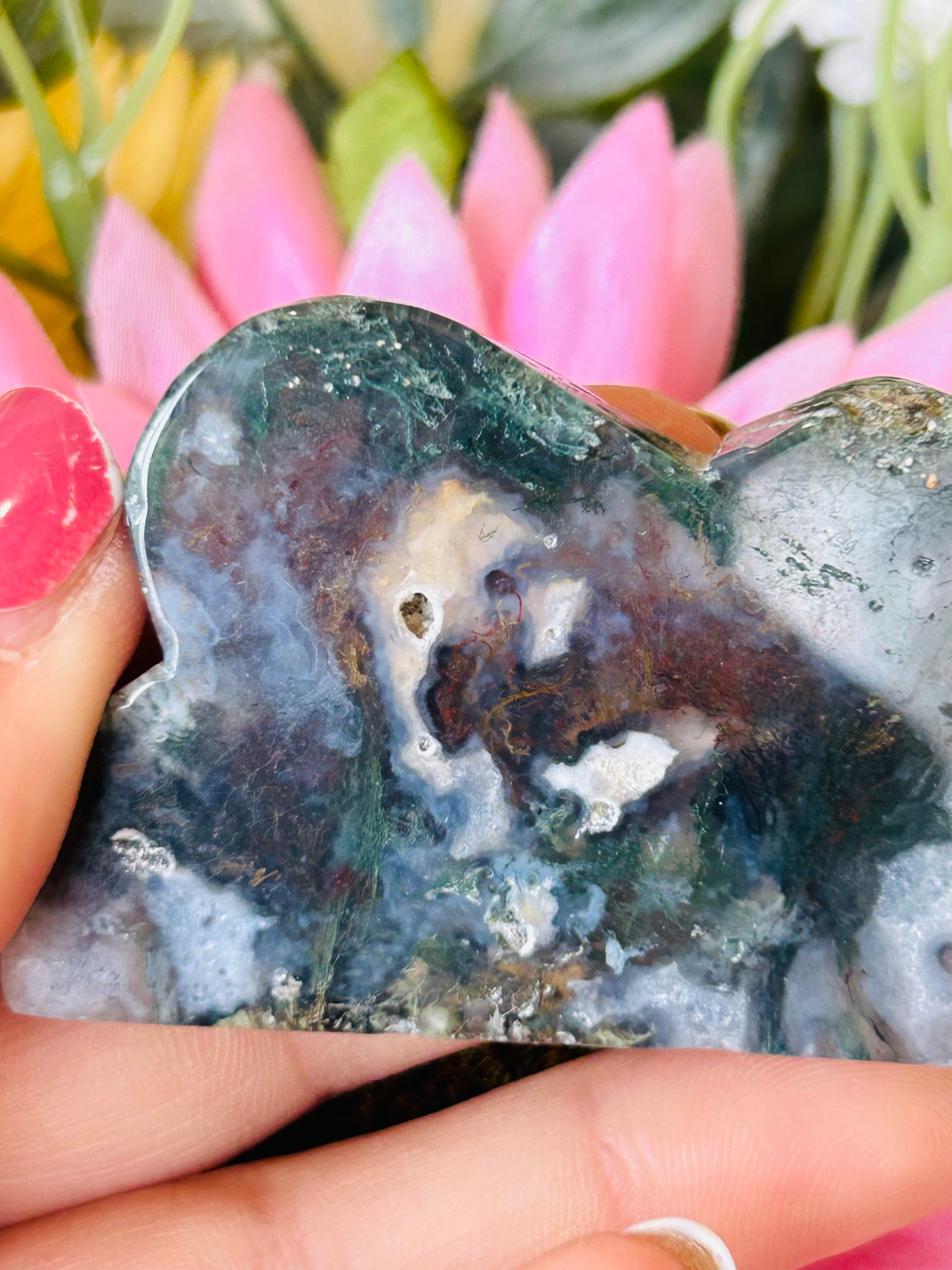 Red moss agate cloud with druzy
